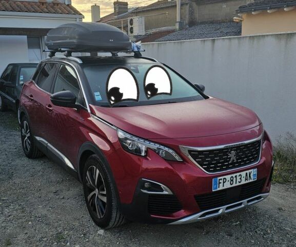 Thomas m’a installé une sorte de grosse casquette ! C’est marrant mais ça pèse lourd 😅