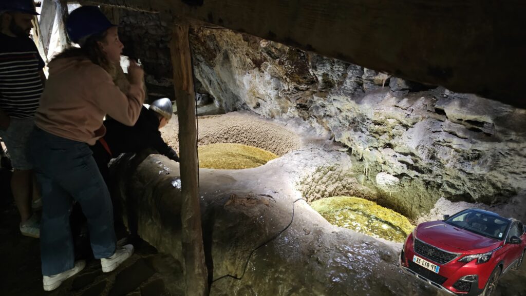 Pour aller dans la grotte il fallait mettre un casque, la grotte était toute petite en hauteur et pour pas que je me fasse mal, Raf et Maélia m’ont mis un casque aussi ! Ils prennent vraiment soin de moi 😇😇😊